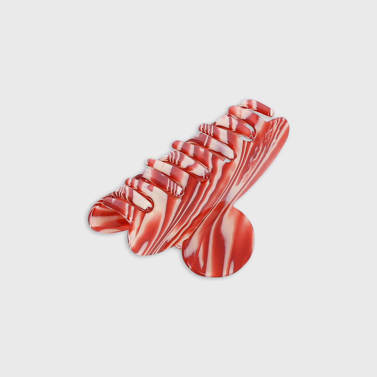 Designed with a bold twist, this medium claw clip comes in a striking red and cream swirl. Keep it your bag for effortless styling and a statement piece made for everyday wear.