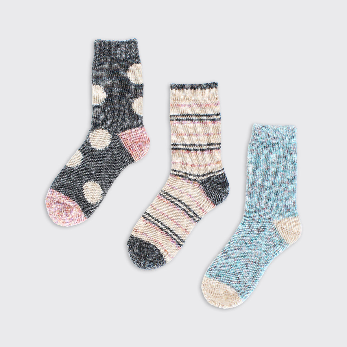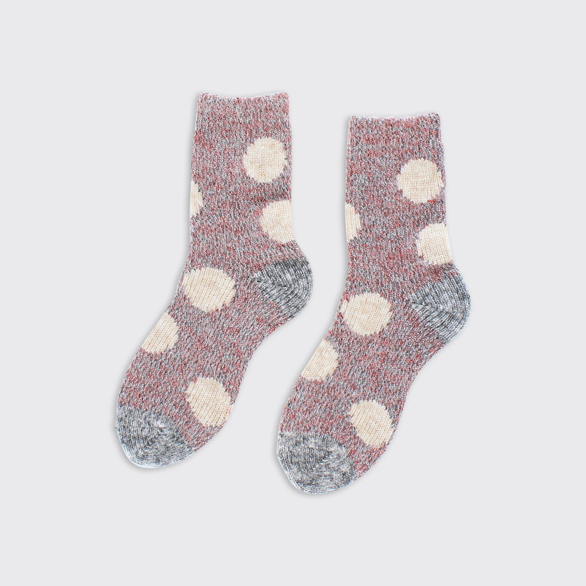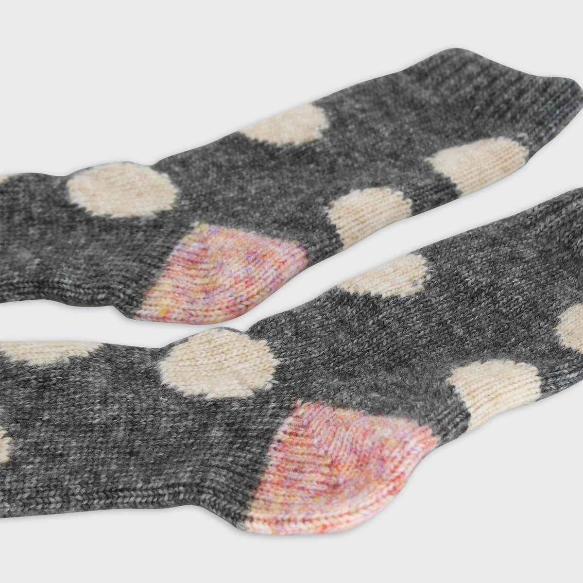 We love the tweed inspired socks. A lovely blend of grey, mulberry and cream spots with contrast heels and toes.