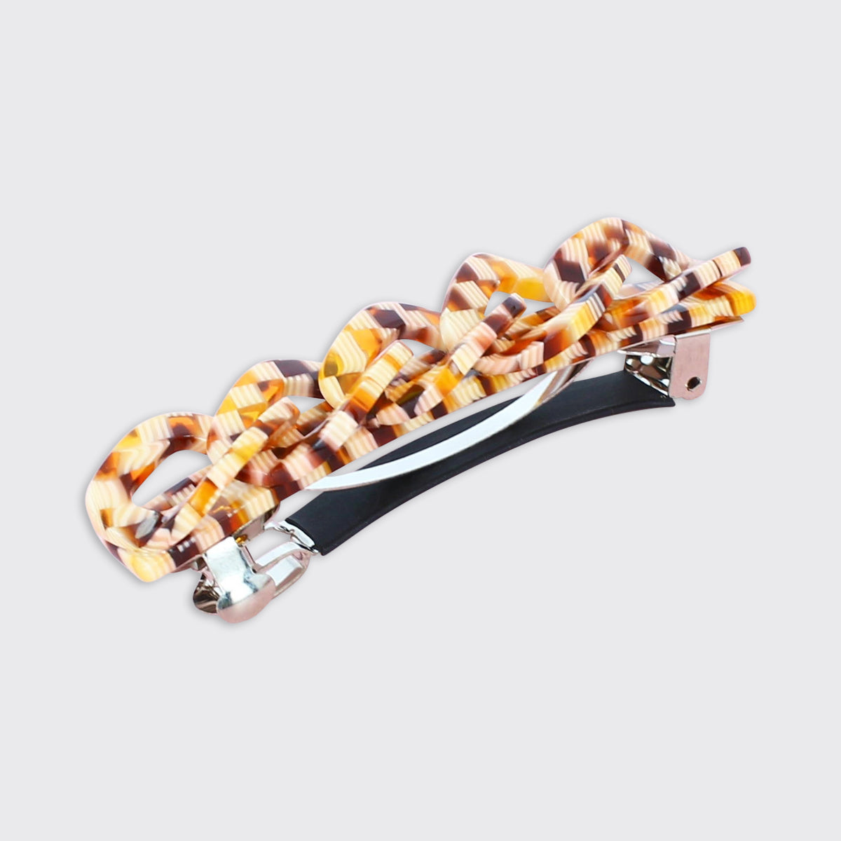 | An unusual hair clip, intricately made and great with any hair colour. Can be used to make a ponytail or to create a half up hair do. Our Millie Mae hair accessories hold hair securely, are very comfortable to wear and are highly durable. |