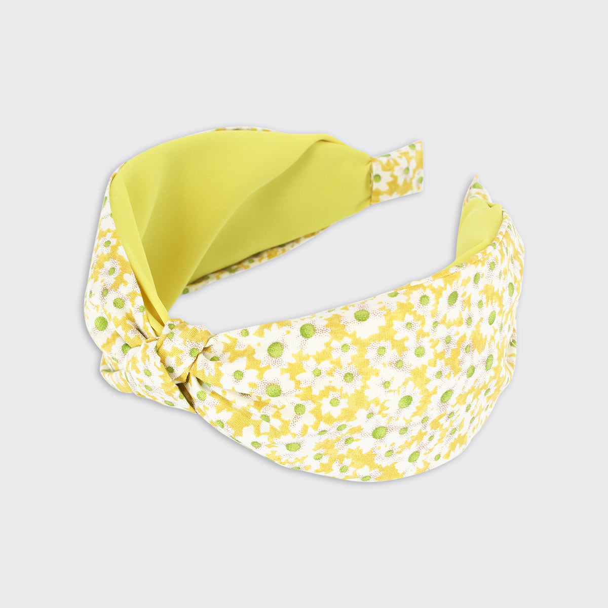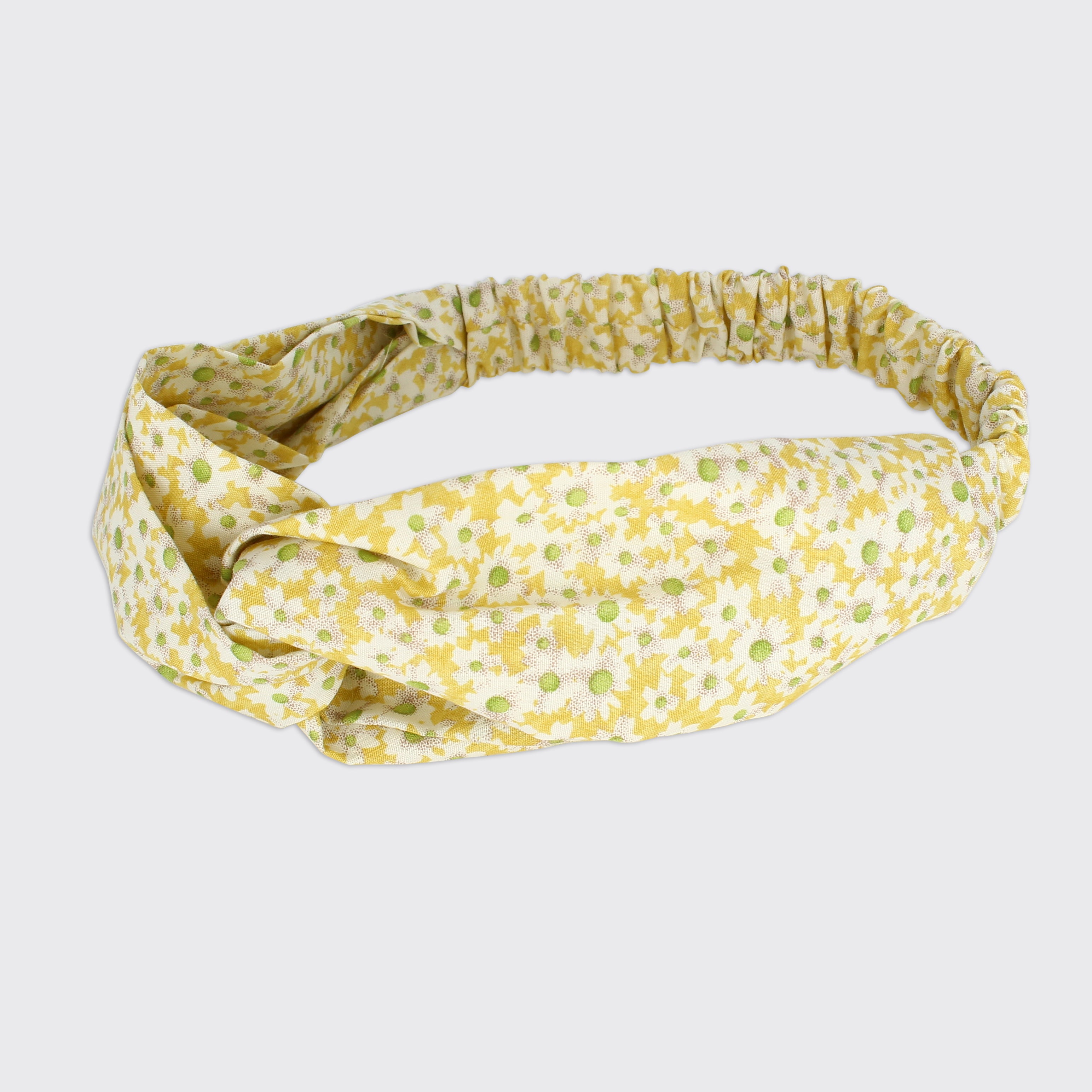 | Our Daisy yellow soft headband is great for a sunny summer look. Little daisies are dotted on a yellow background. Made with a soft cotton fabric and finished with a knot detail. This design also comes in a matching wide headband and scrunchie. Our Millie Mae hair accessories are handmade, hold hair securely and are very comfortable to wear. Approximate size: 50 x 4cm Material: Cotton Care instructions: Spot clean |