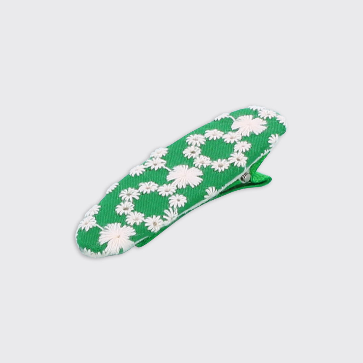 A sweet cotton hair clip with an embroidered daisy chain design. The crocodile clip makes it easy to create a half up style or use as a side clip.