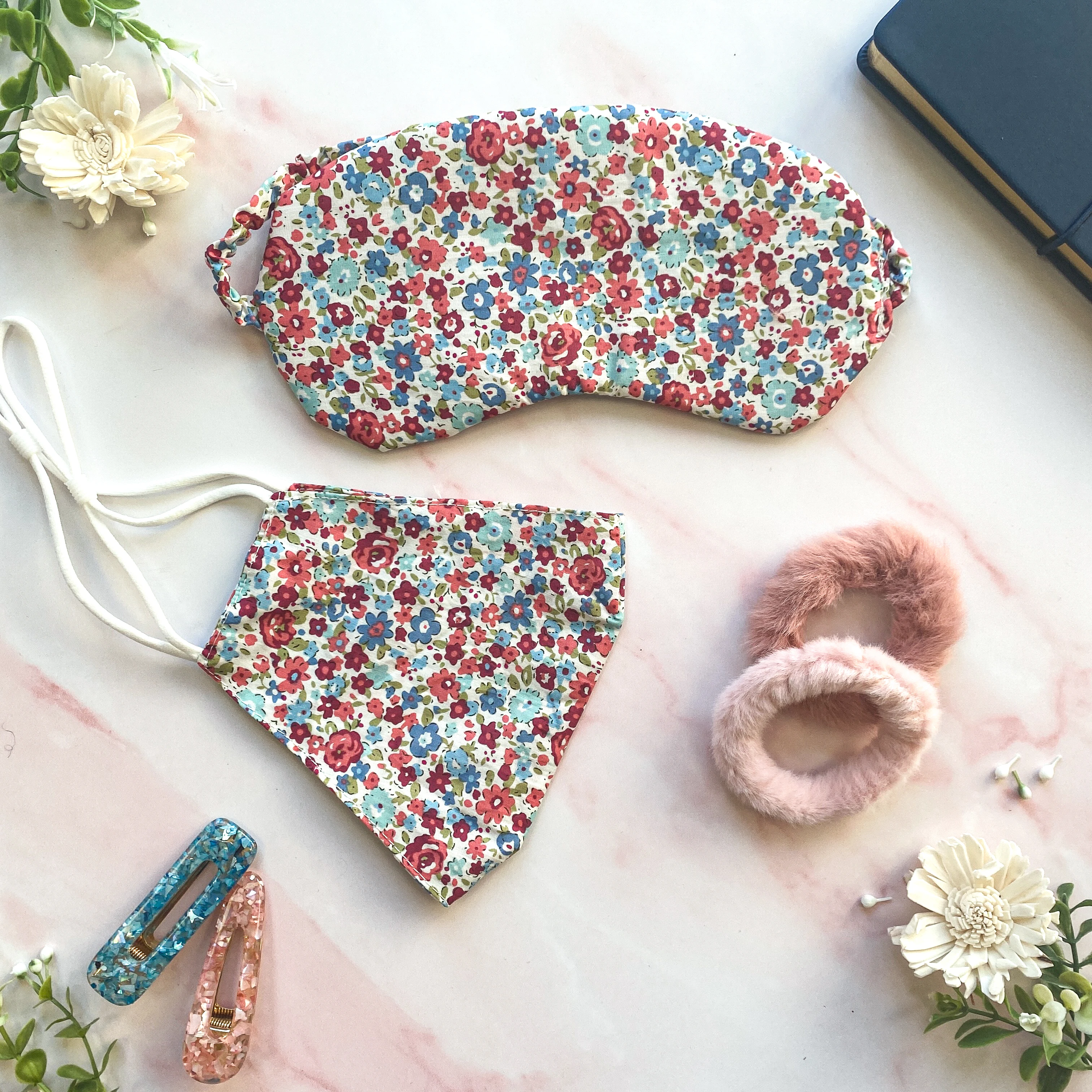 A soft fitting eyemask in a pretty floral fabric. Great for relaxation time. Add a few drops of essential oils to the front for a calming experience.