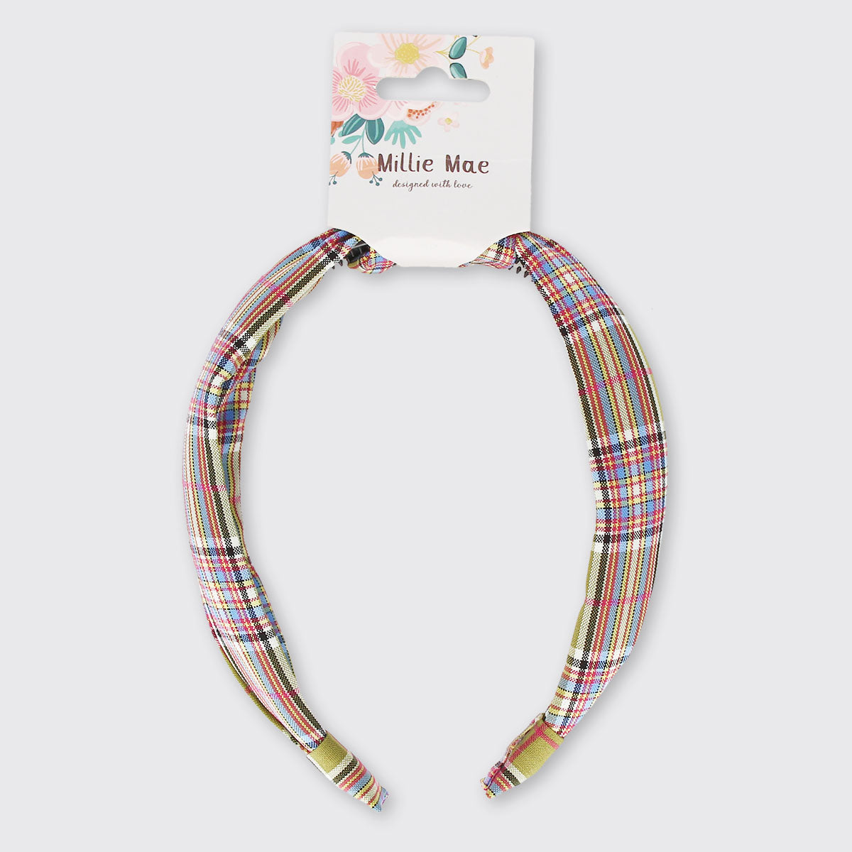 Tartan headband in a mix colour way. On trend style and very comfortable to wear. A must have hair accessory!