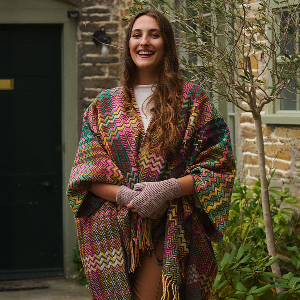 This generously sized blanket wrap is a winter essential. It has multitude of beautiful colours making it a 'go with anything' item. It is made from a soft fabric that will keep you warm and cosy.
