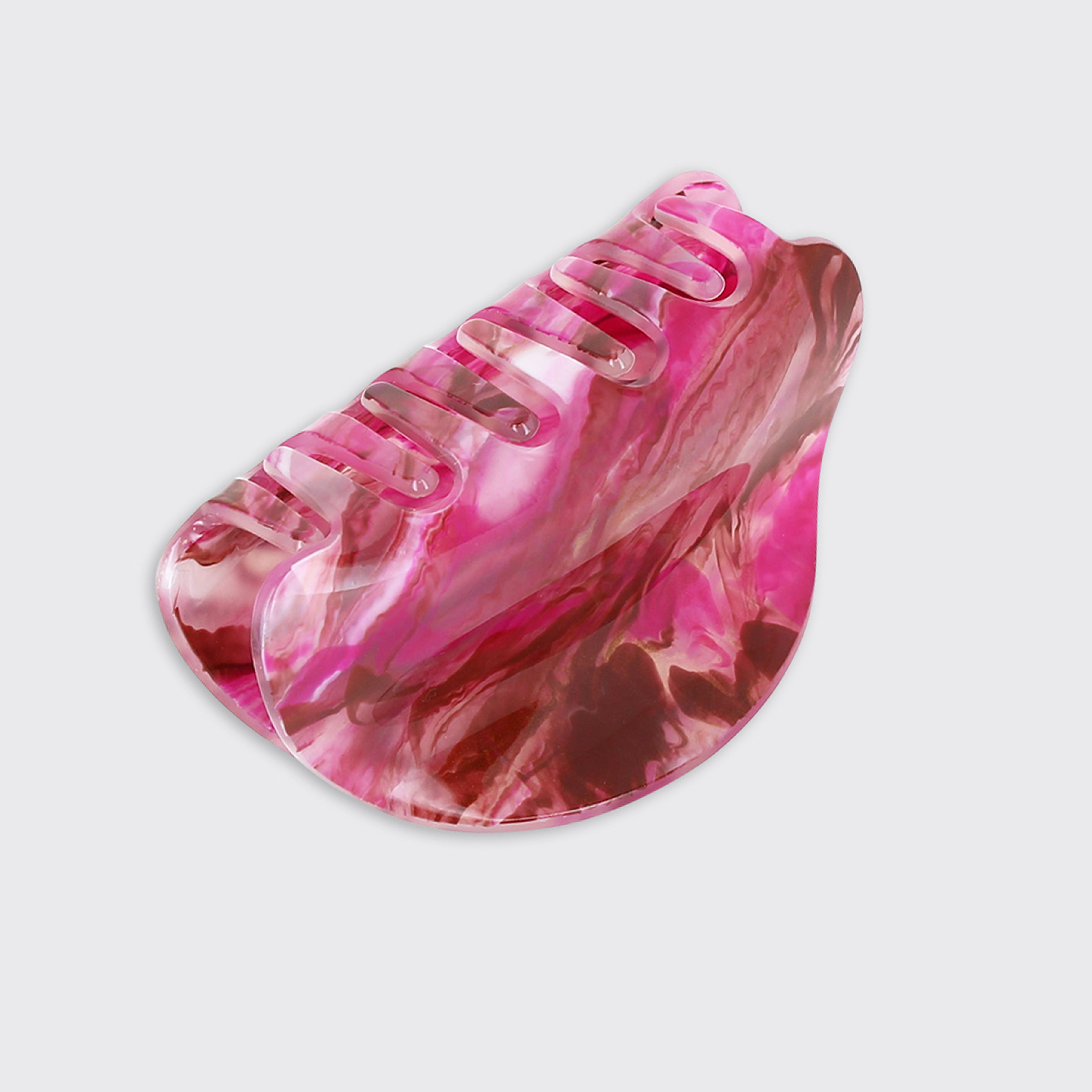 This chunky claw clip is perfect for an effortless look and on-the-go styling! It features a blend of raspberry pink and soft marbled hues.