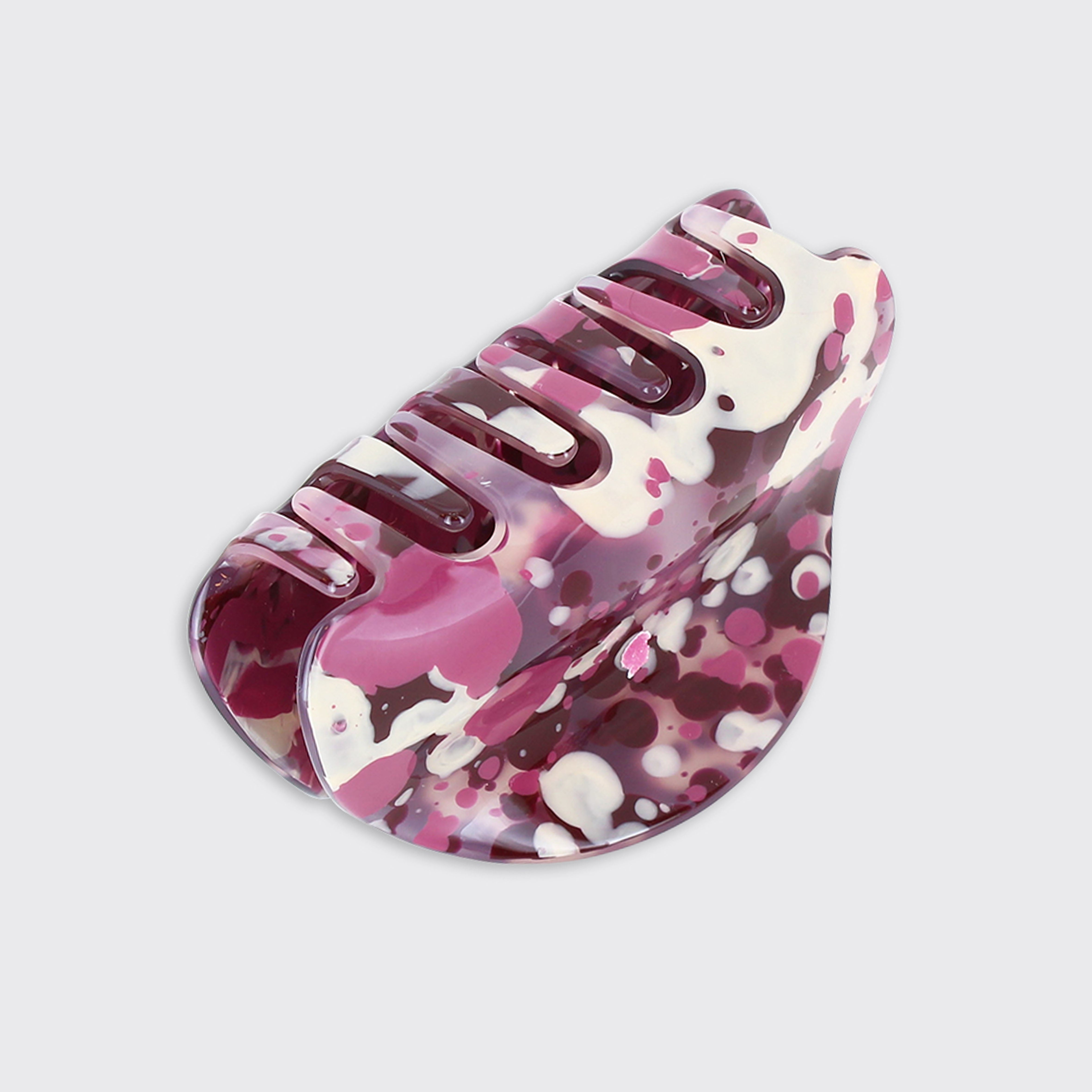 Perfect for keeping your hair in place, this chunky claw clip features a plum base with playful patterns of pink and white dots.