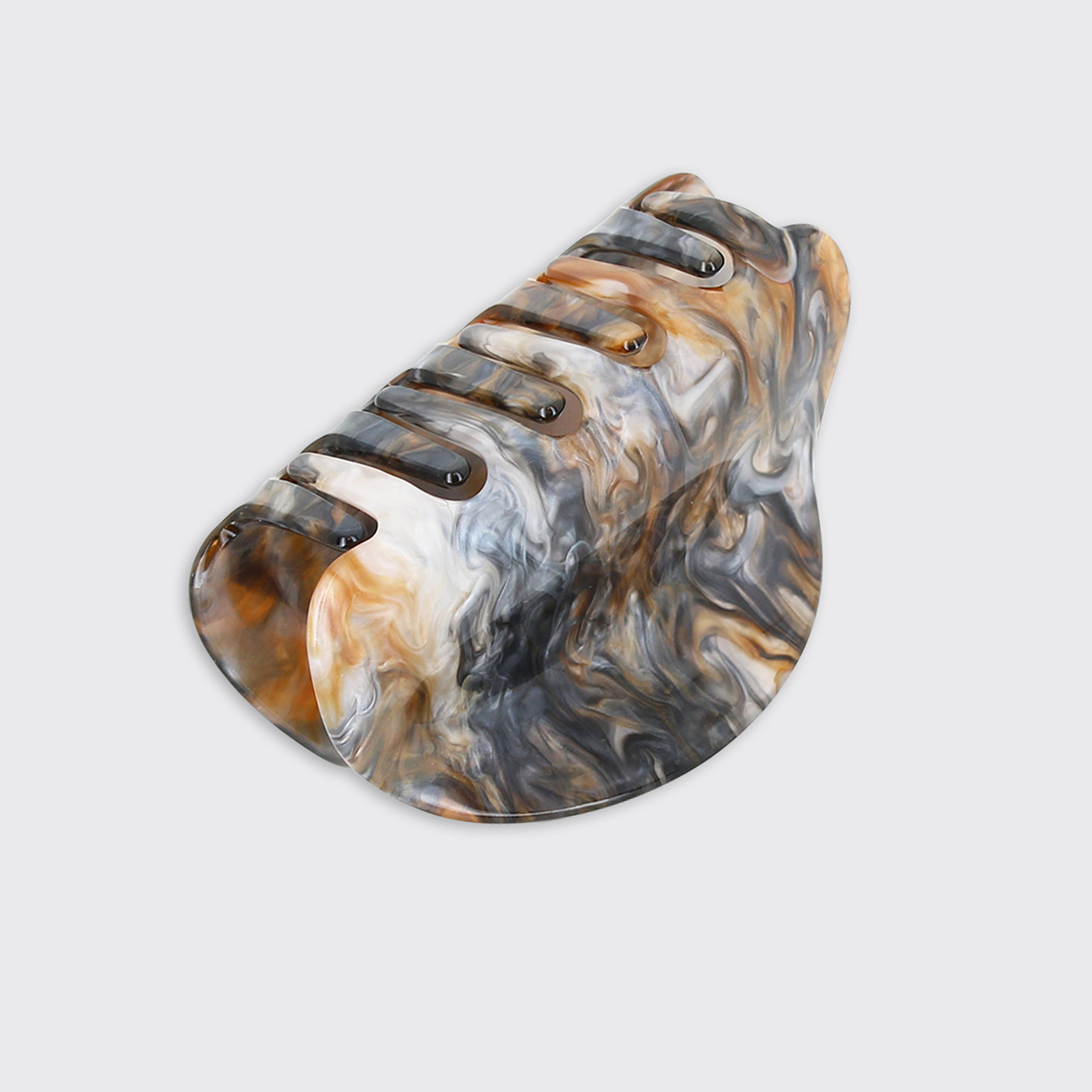 This chunky claw clip is perfect for an effortless look and on-the-go styling! It features a graphite base adorned with intricate swirls of gold, ivory, and silver.