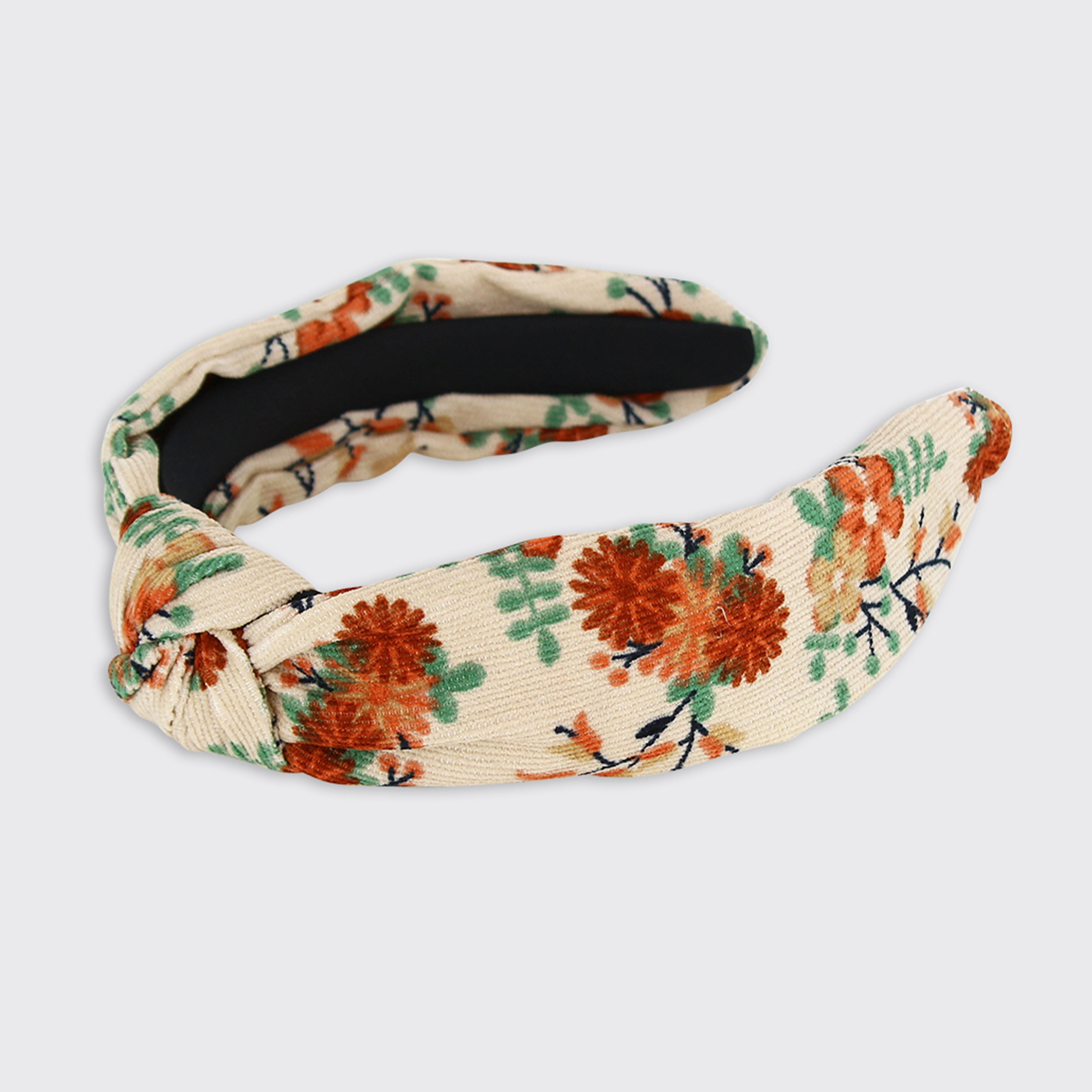 Make everyday a good hair day with this vintage-inspired floral headband. Its earthy tones of rust, green, and cream add a touch of autumnal charm to any look.