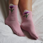 Add a touch of charm to your everyday essentials with these delightful pink socks, featuring blooming floral accent.