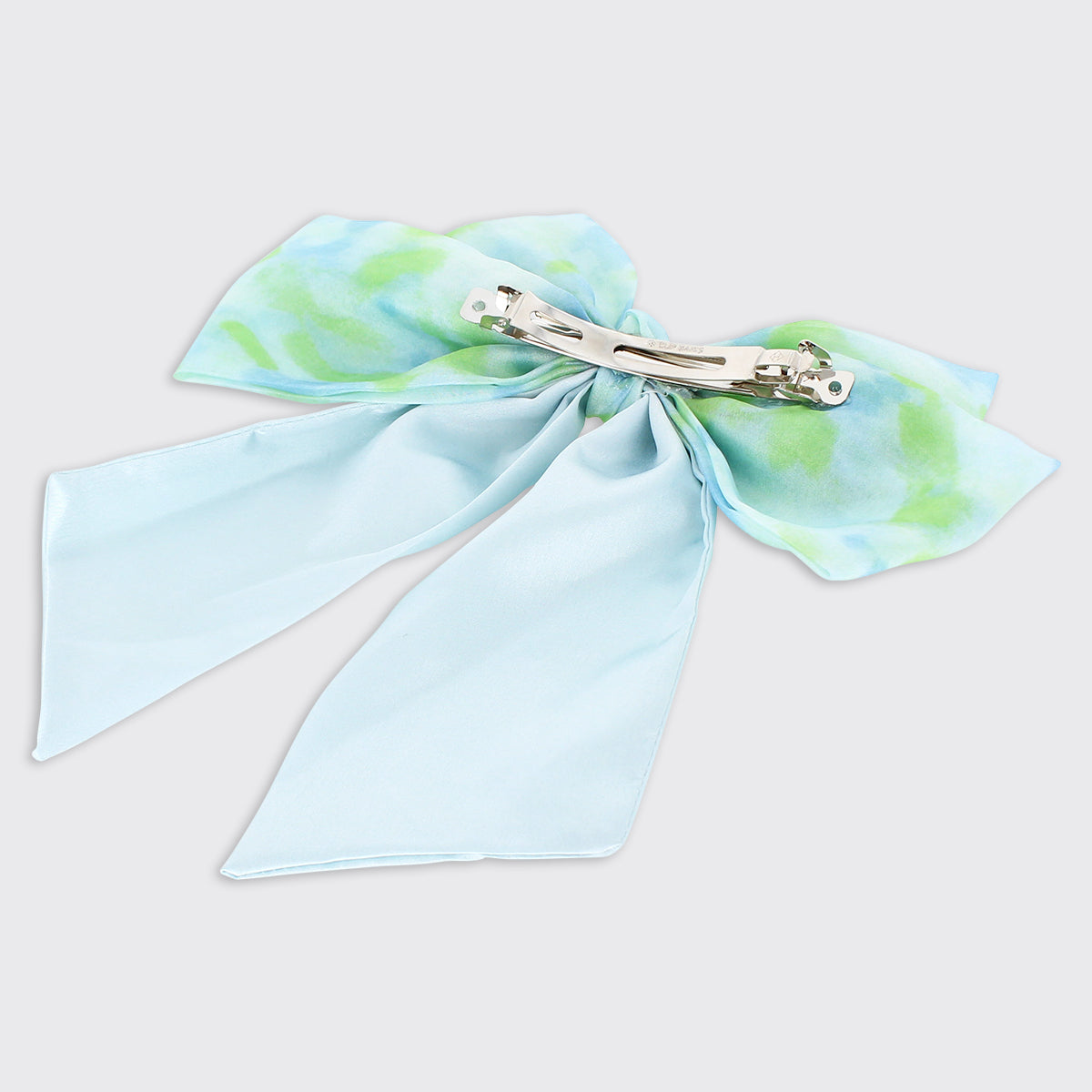 This bow sits on a simple barrette clip that secures in the hair with ease.