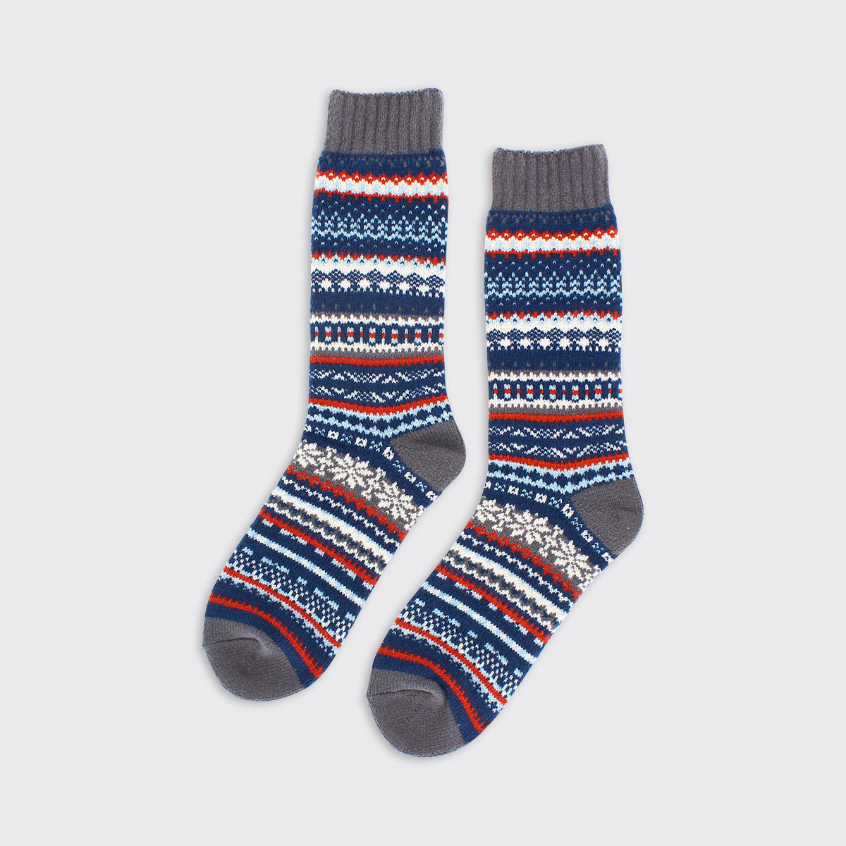 Our Hector Men's socks are made from are made from high quality material with stretch for superb fit and seamless toes for total comfort. They feature a traditional blue Fair Isle pattern and a blue trim.