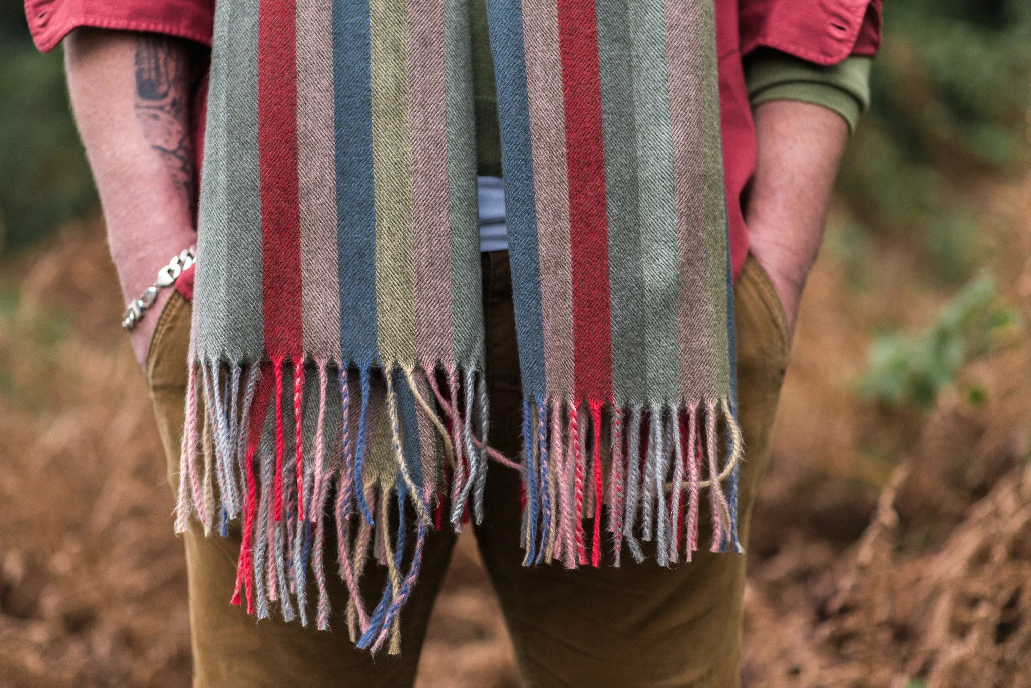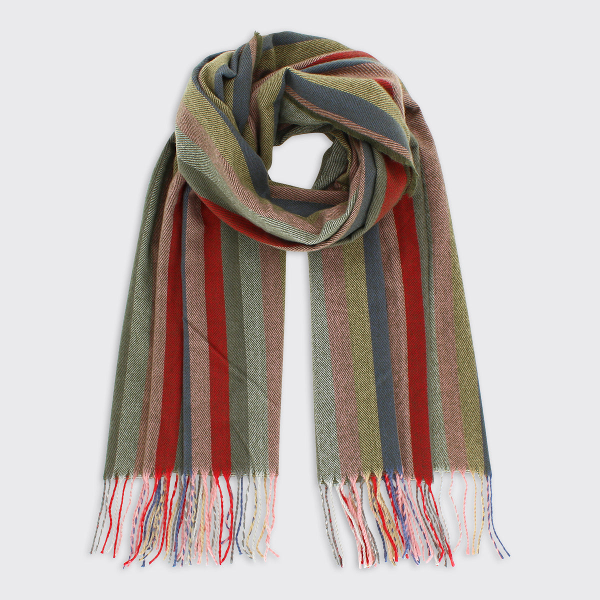 A sophisticated men's striped scarf with colours to match all outfits. Keep warm in style!