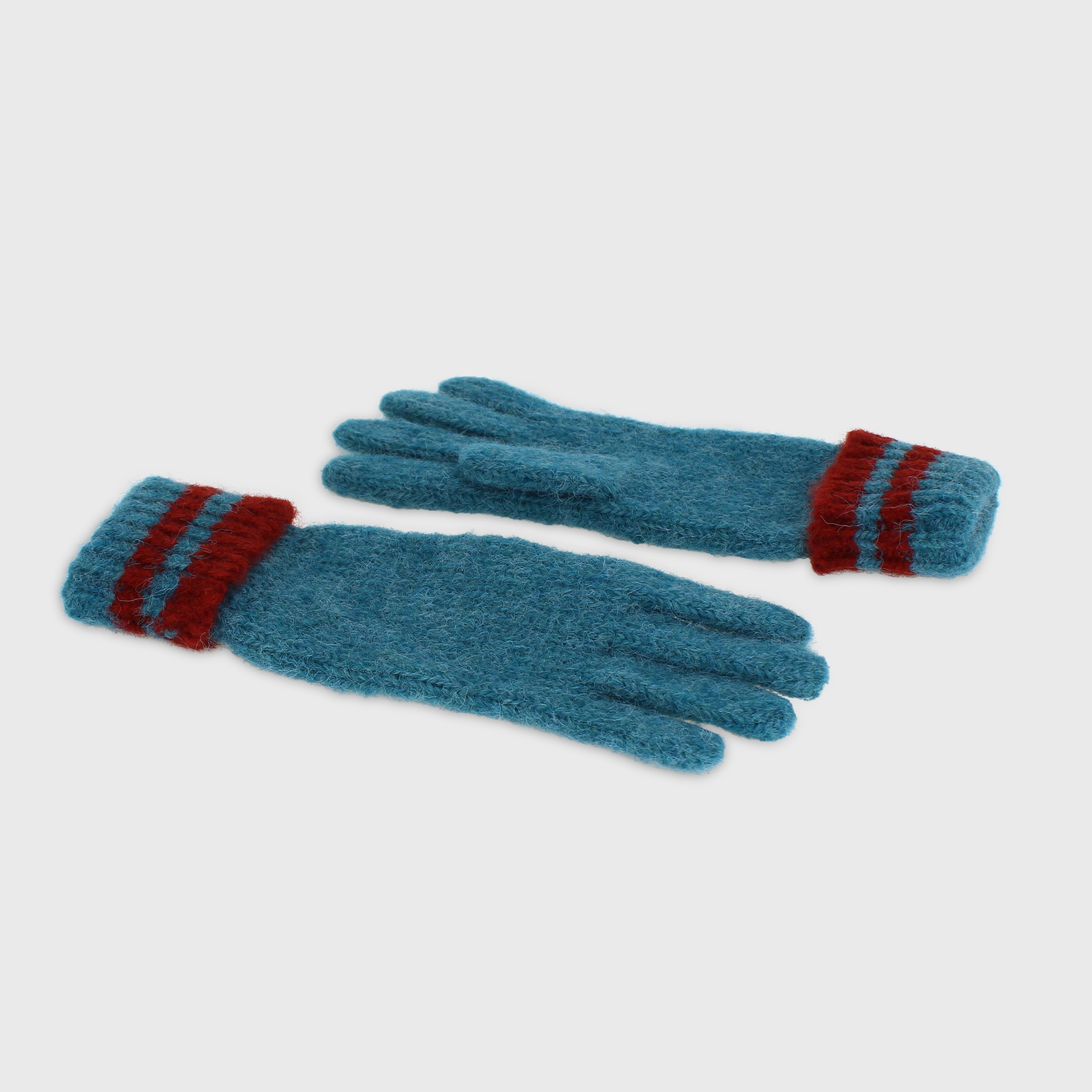 Men's Wool Blend Gloves - Teal / Burgundy