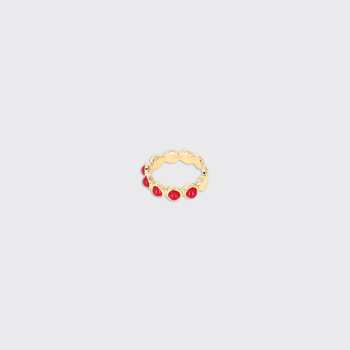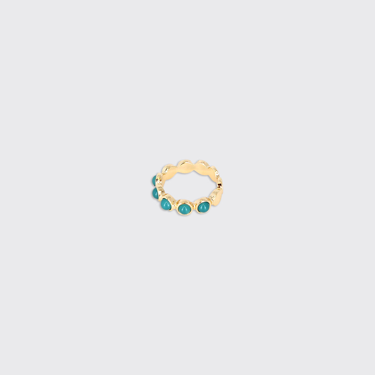A bezel set ring with seven stones. This contemporary ring is perfect for a modern style lover.