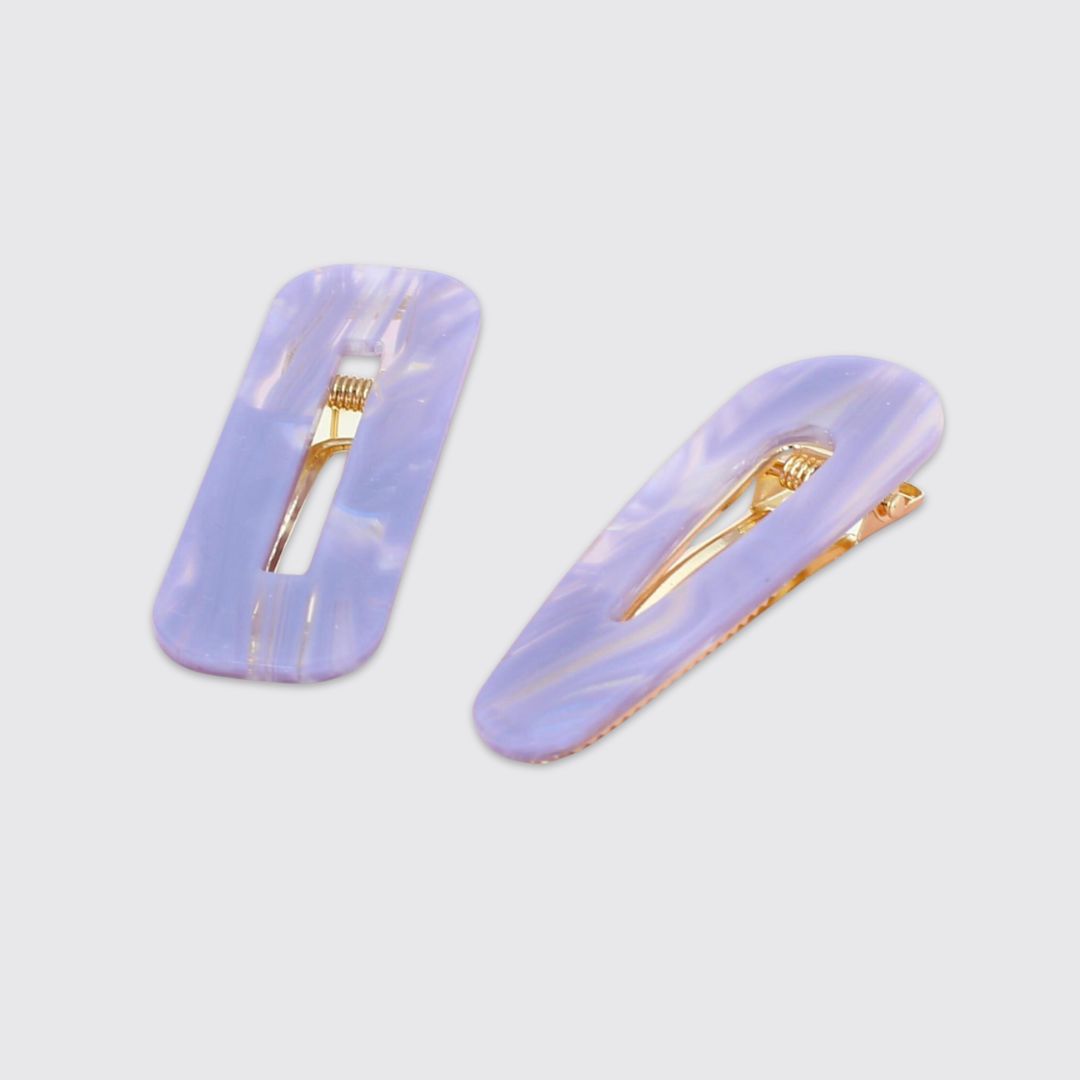 A set of on trend hair clips in two different styles in a bright, marbled pattern. Perfect for a pop of colour.