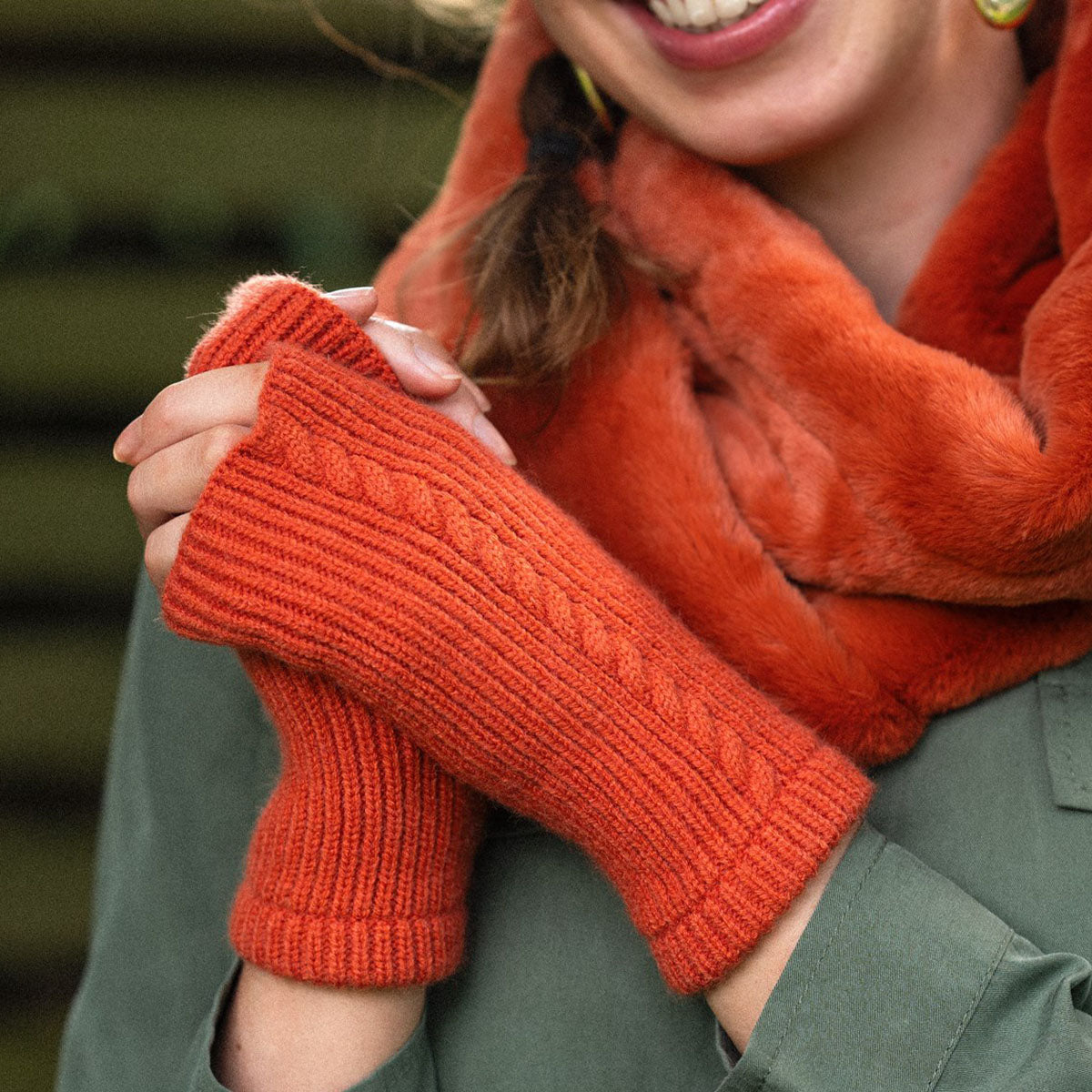 Our practical yet stylish Ruby fingerless gloves are perfect for keeping your hands warm during the winter months. They feature ribbed hems and thumb sleeve for a snug fit and are incredibly soft.