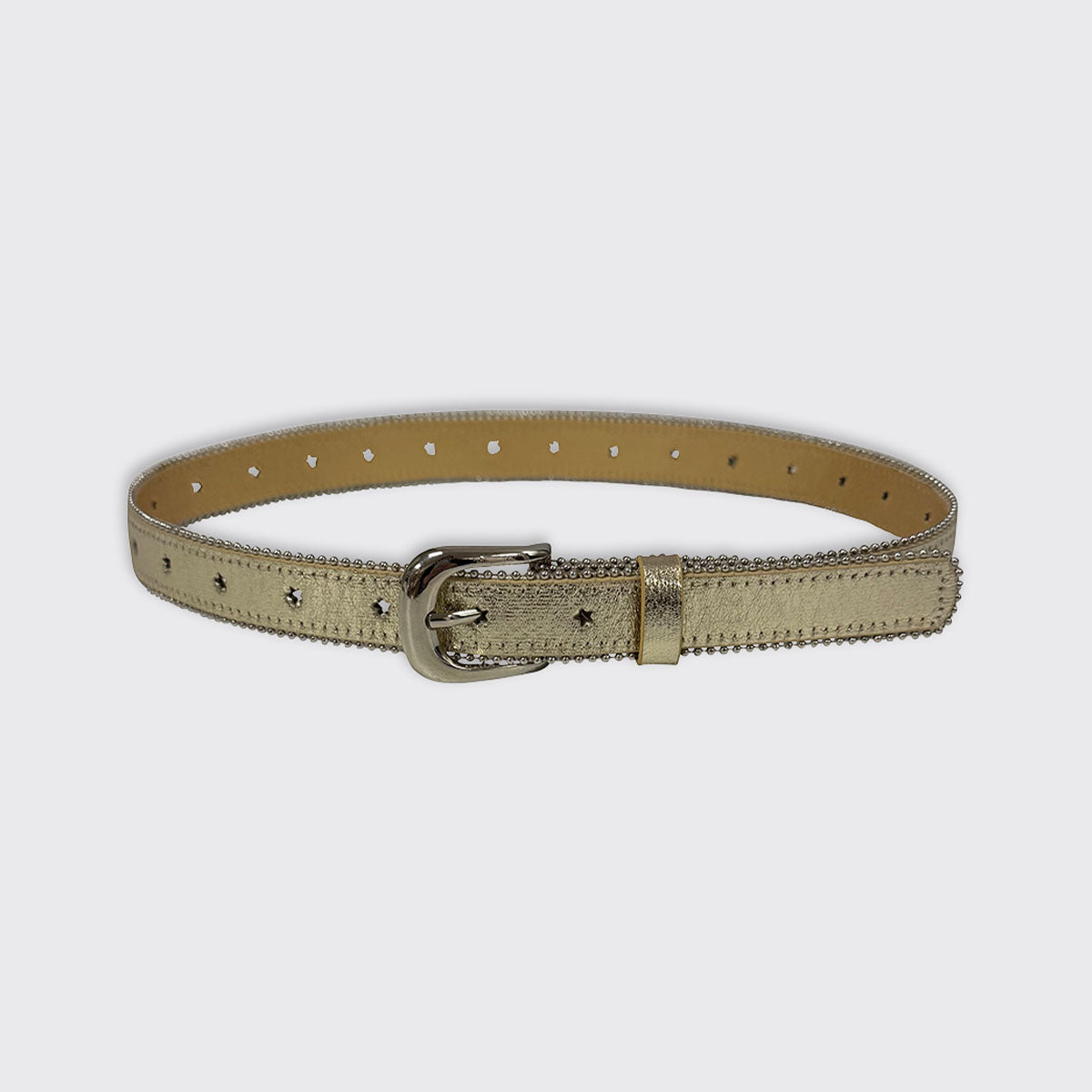 A gorgeous gold belt with star punched holes. So versatile, it will go with any outfit.