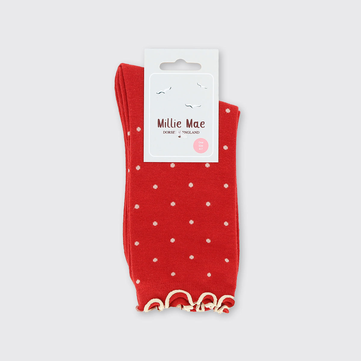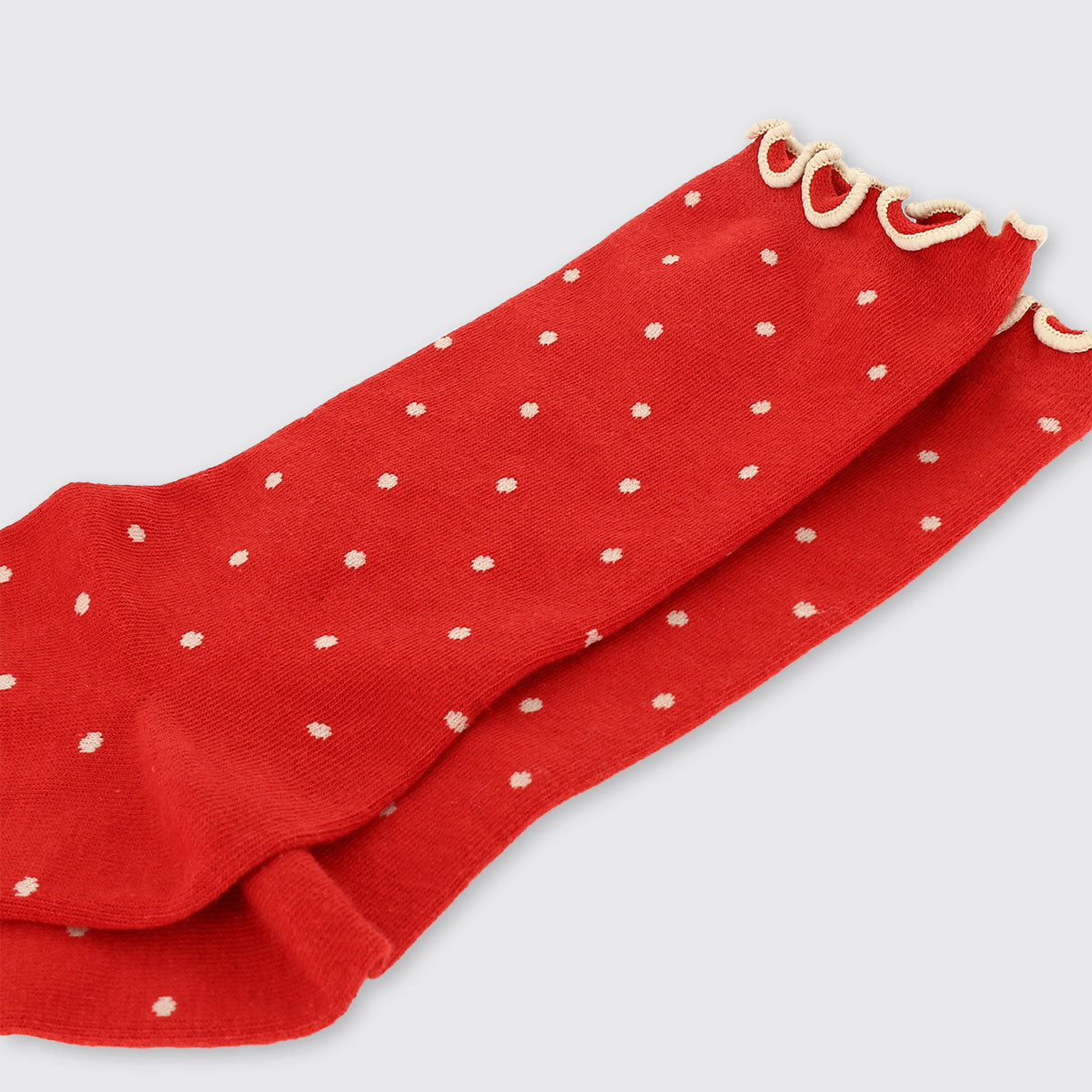 Our range of small spot socks are full of colour! Super comfy and finished with a contrast ruffle top.
