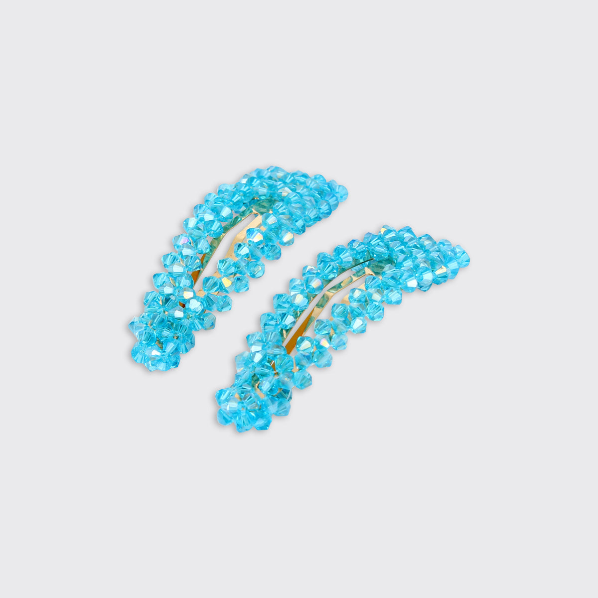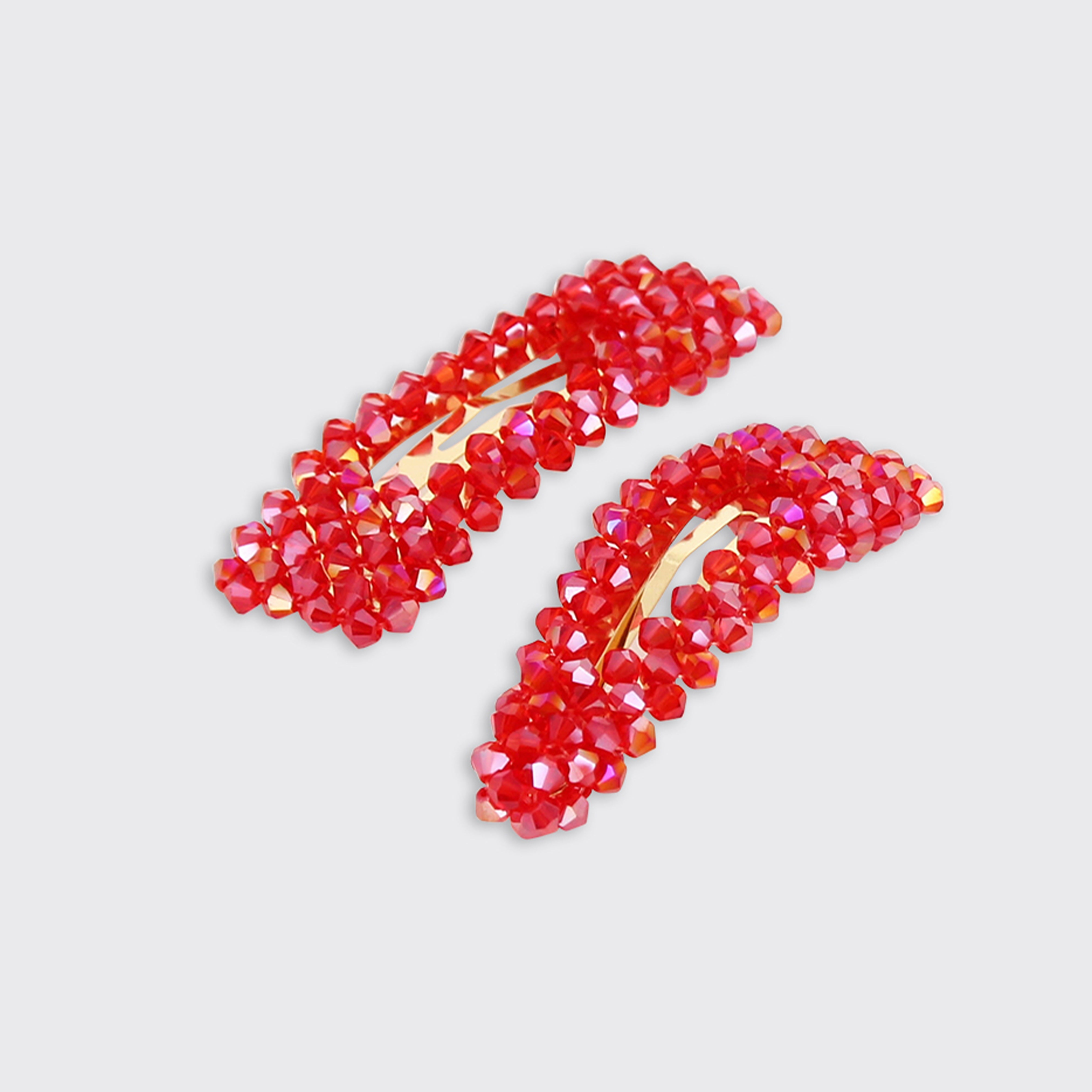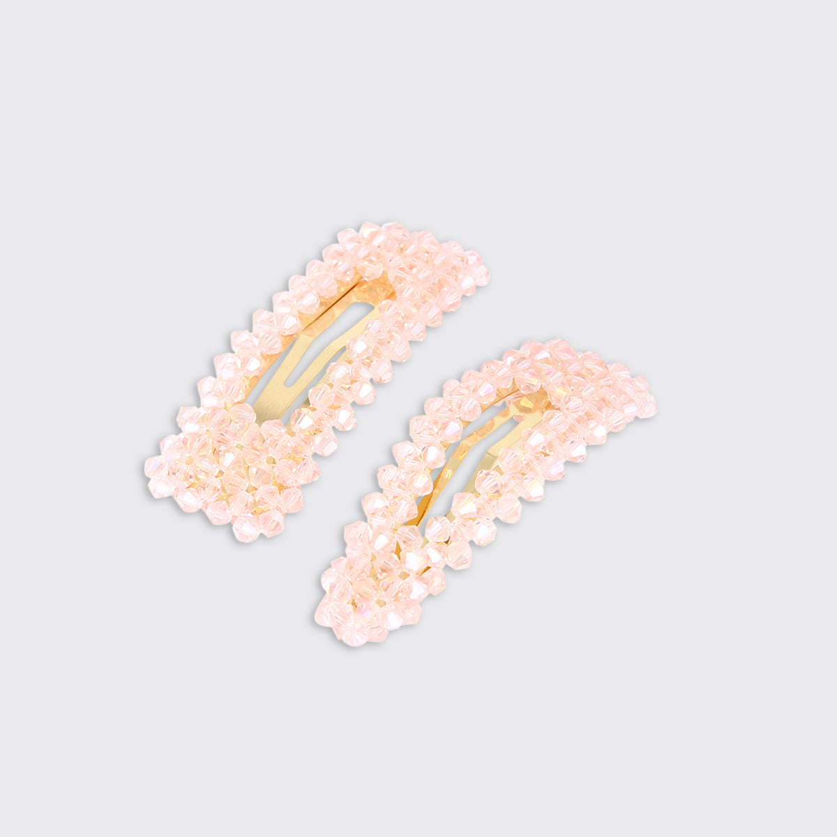 A pair of super sparkly clips adorned with bright beads that fasten with a satisfying click!