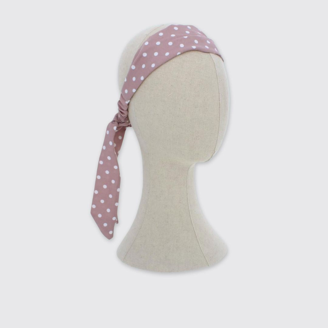 Soft unstructured headband with white spots. The long tails make it easy to create a scarf-tied look. Soft-feel material with elastic for the perfect all day fit.