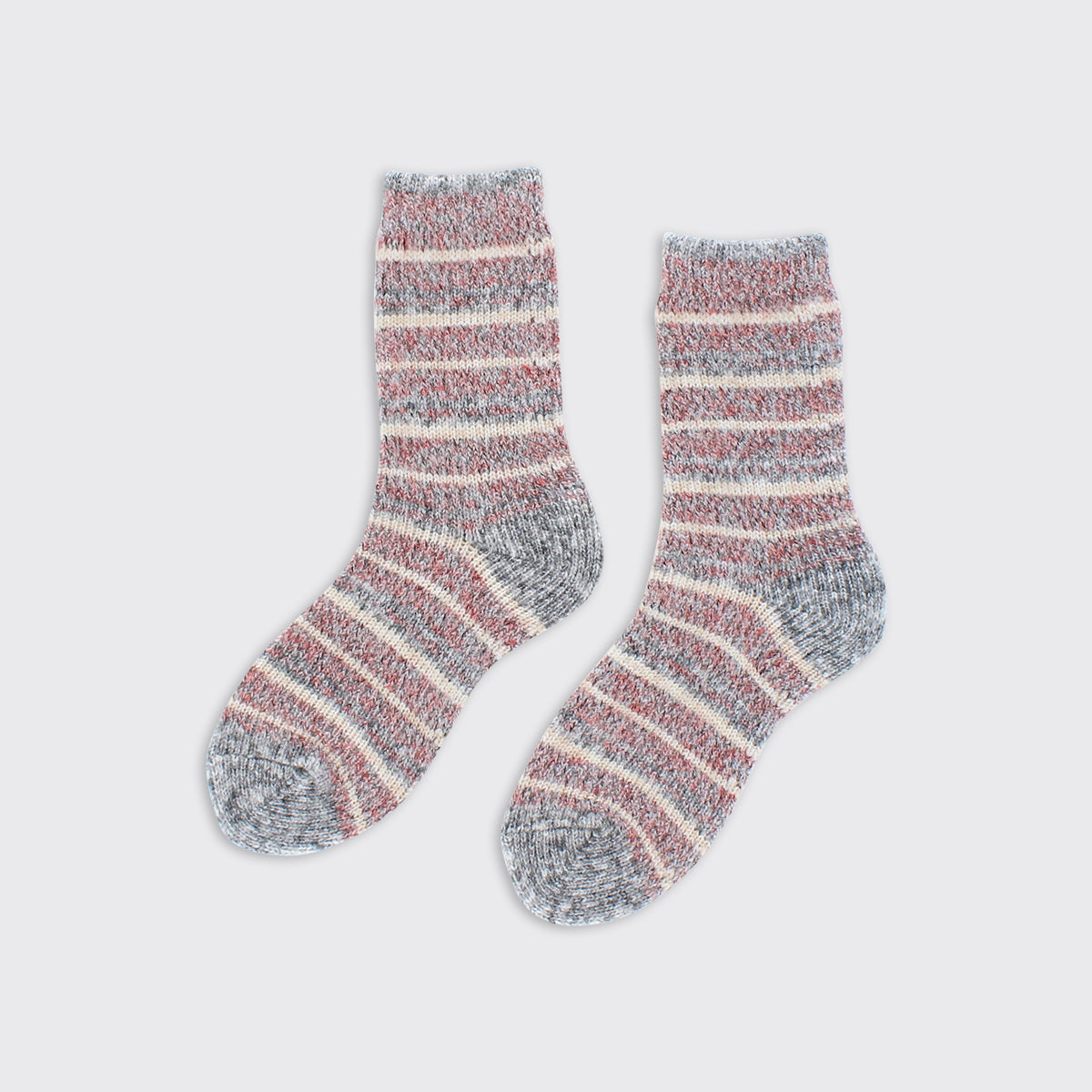 Tweed Stripe Thick Knit Socks - Mulberry / Grey