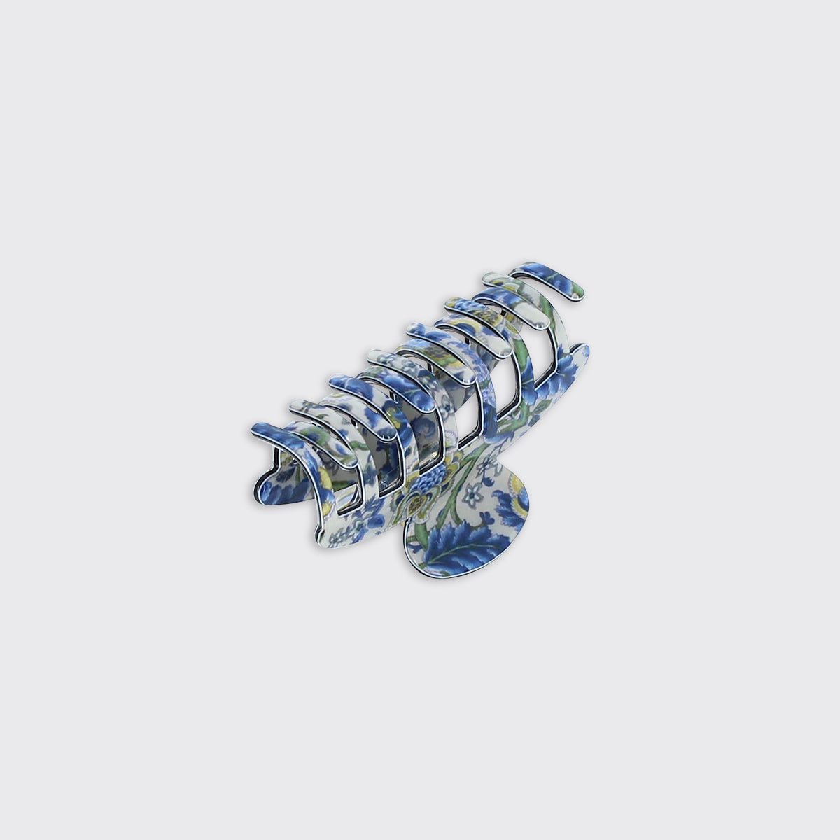 Secure your hair with our Verity Small Claw Clip. This stylish clip features a beautiful blue and white floral pattern inspired by classic botanical prints. It's perfect for creating a half-up hairstyle or a quick and easy up do.