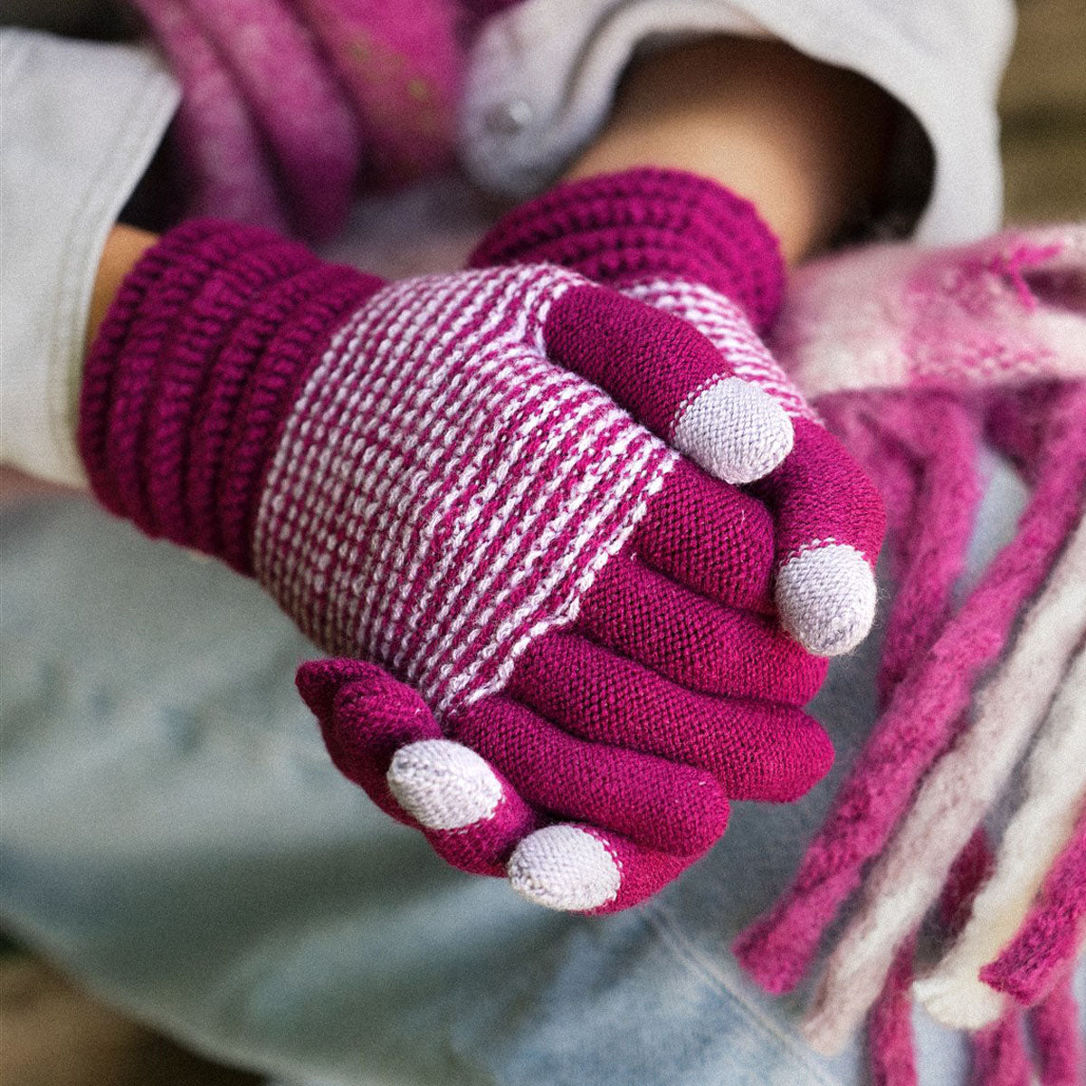 Cosy gloves for women with contrast stripe design and long ribbed cuffs. Touch screen fingertip fabric so no need to remove your gloves to use your phone. We have added a little stretch making these gloves a perfect fit for all.